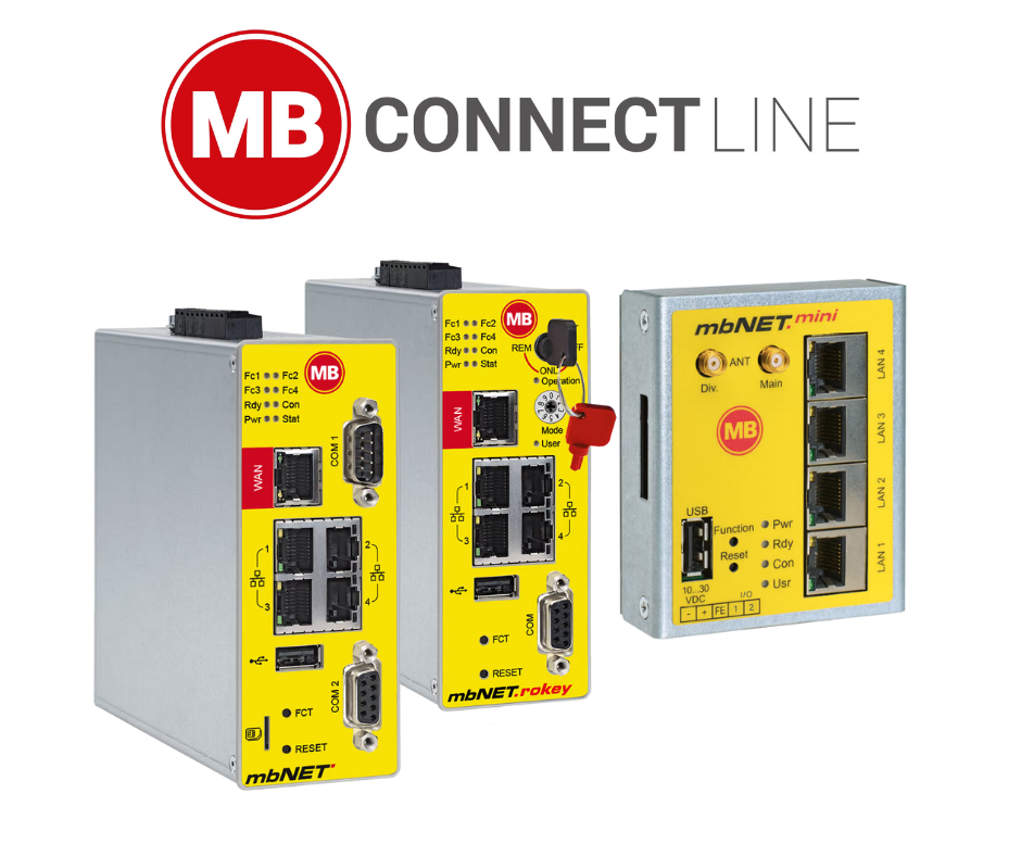 • Bộ định tuyến mbNET, mbNET.mini: Kết nối từ xa cho PLC, HMI hoặc SCADA. Tích hợp sẵn tường lửa và chức năng phân tách mạng LAN.